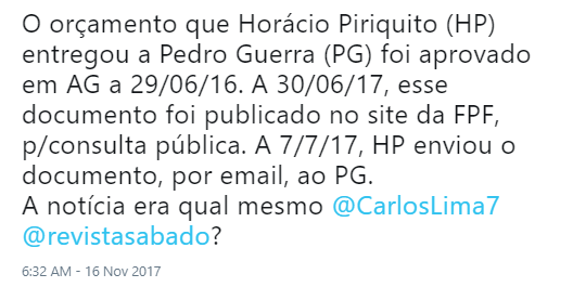 Para eles o importante é que o Piriquito mandou informação "super-confidencial" ao Guerra, não importa que essa informação pode ser acedida por todos, no site da FPF e que o Piriquito só dizia que era super confidencial para dar a ele próprio uma importância que ele não tinha.